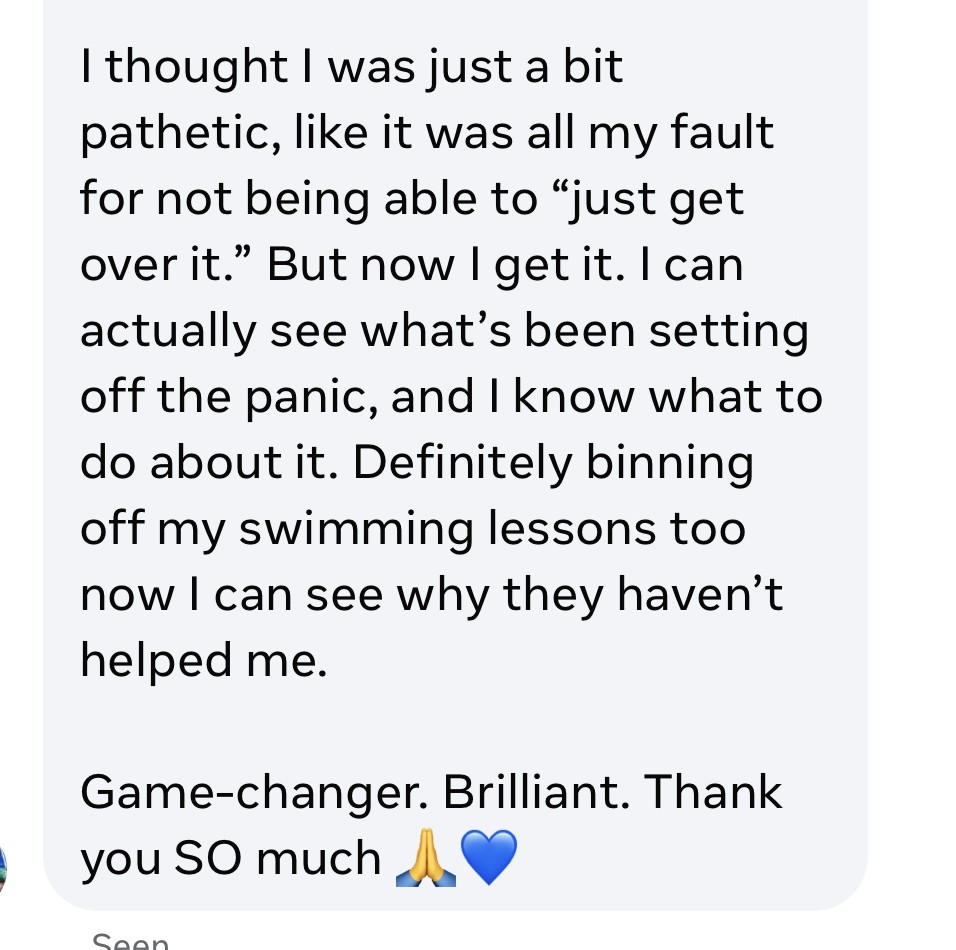 "I believed I was a panicker. That I wasn't a 'water person'. I thought everyone else could just get on with it and there was something wrong with me. Turns out I was wrong.”